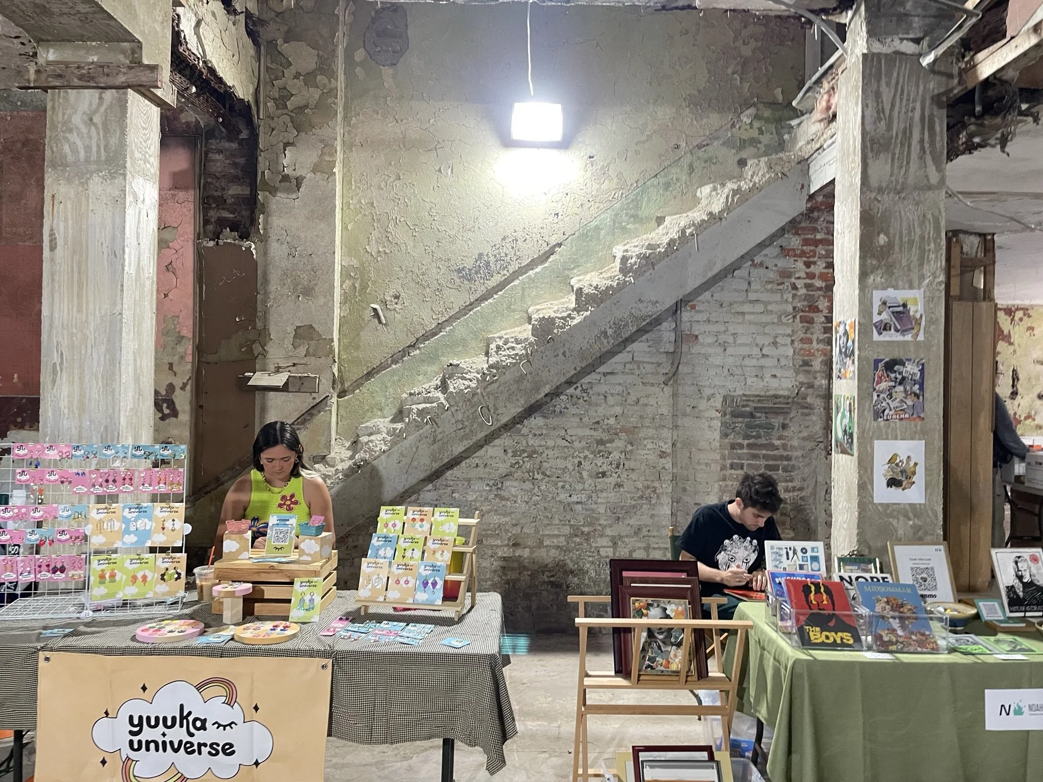 The two-floor experience featured food and shopping on the ground level during the day and dusk-to-night music performances upstairs. The wide open warehouse was in open-air condition prior to the full restoration of the building soon after.