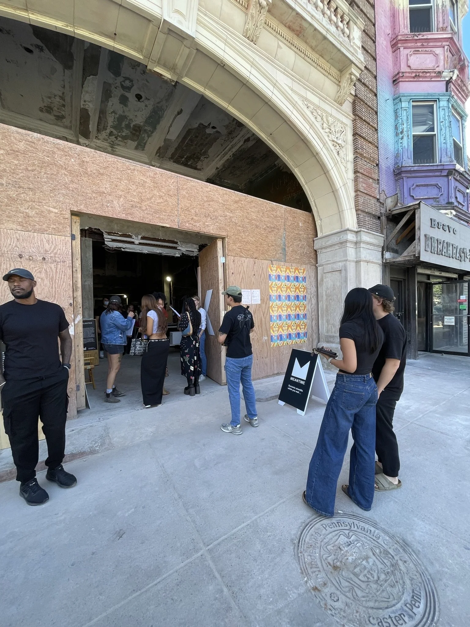 Meantime hosted Velocities 2, a daylong activation of the former Leader Theater in West Philadelphia highlighting the building's history as a cinema and neighborhood event space. Curated and programmed with Steph Irwin, Jerry Kaba and Eugene Lew, the event featured vendors by Now+Then Marketplace, workshops, a special film screening, live analog synth sounds, and visual projection performances lighting up the historic theater room for the first time in nearly sixty years.