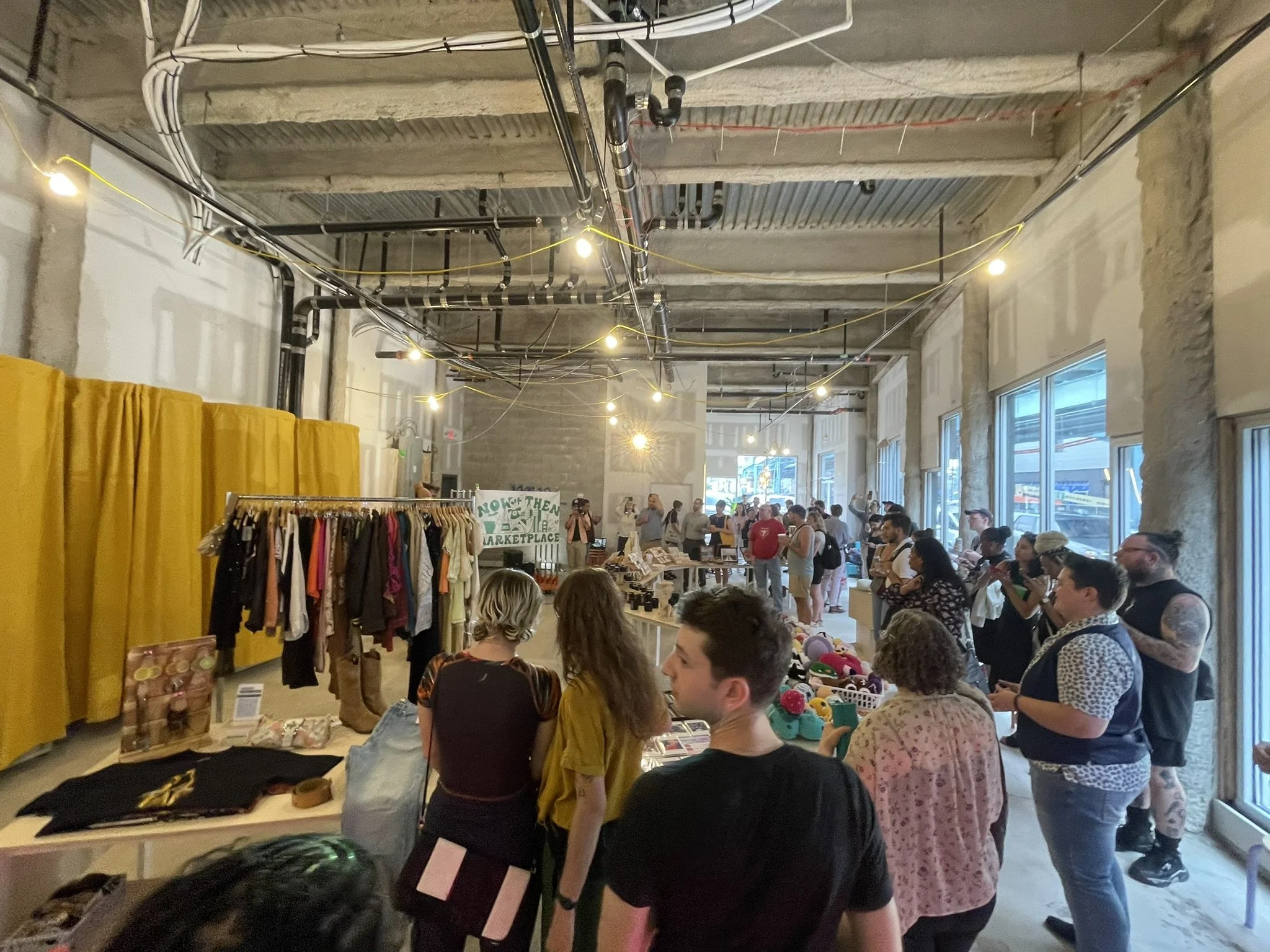 With programming partner Now and Then Marketplace, this was our first major vacant retail space activation in a new construction project. The large space accommodated dozens of table vendors which also spilled out onto the urban plaza and became an indoor/outdoor experience. A capsule art exhibition with work by Heather Phillips and Fjord Gallery also occupied the space.
